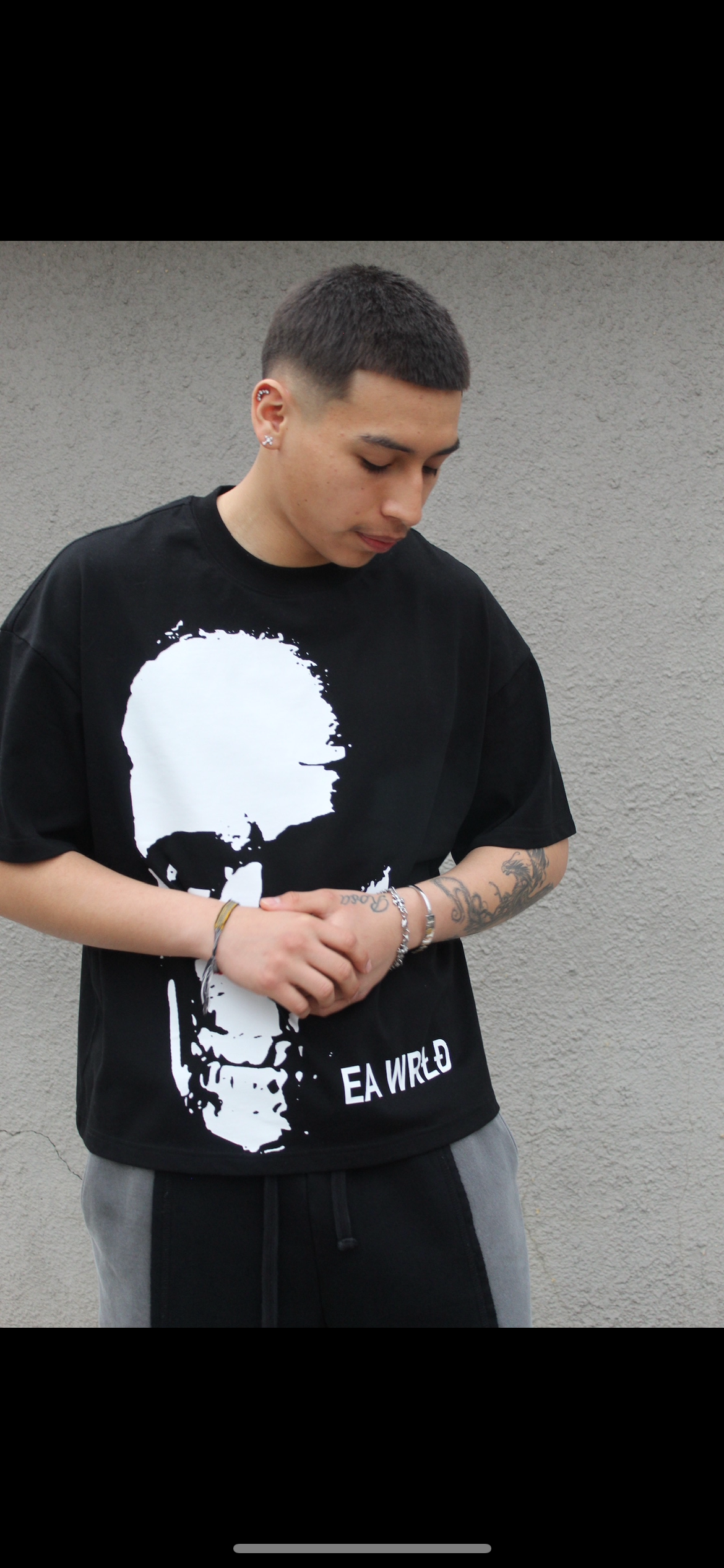 Size & Fit: True to size, an over-sized cropped boxy fit t-shirt.